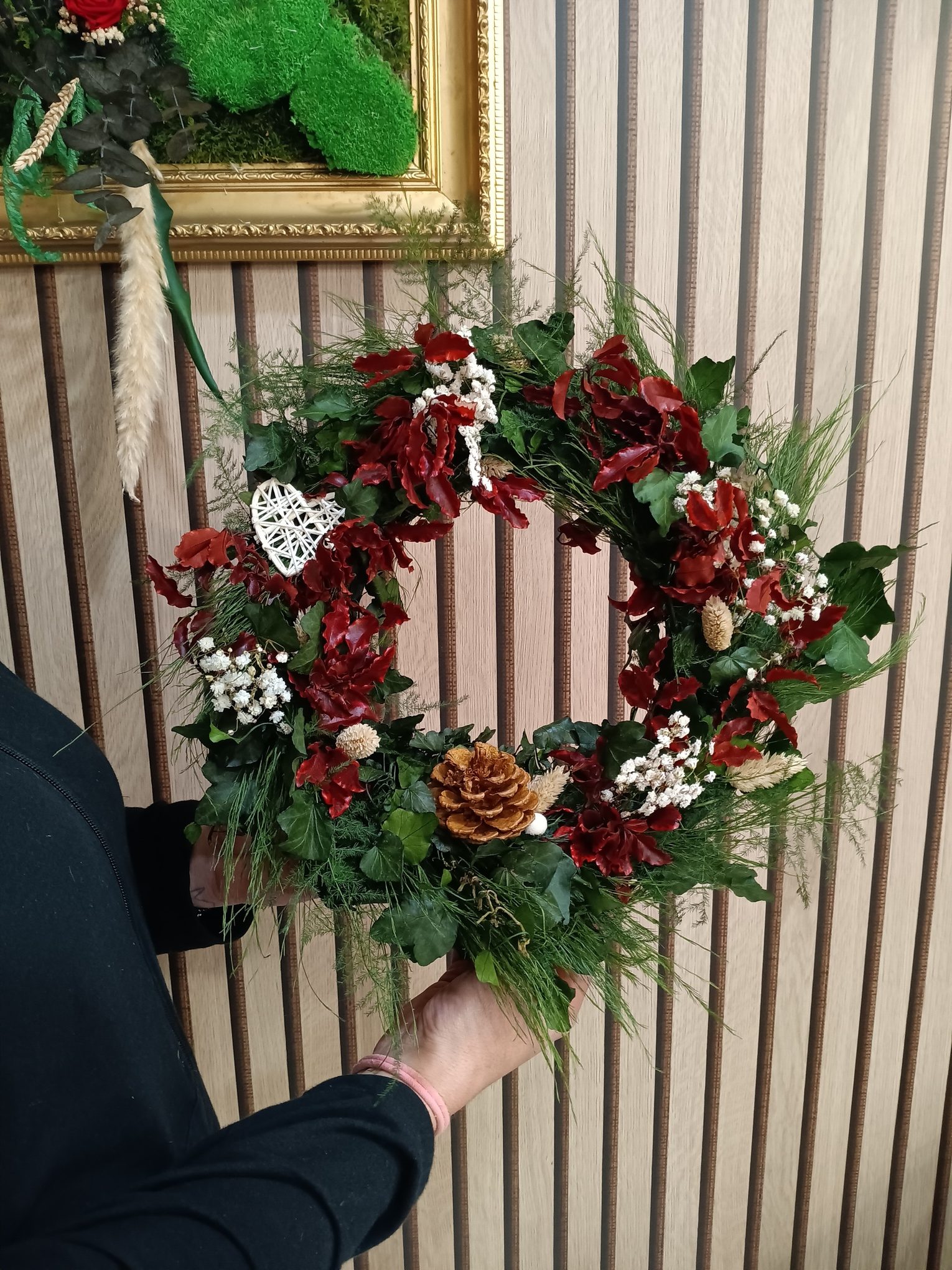 Quan fem una corona de Nadal amb flor preservada, estem creant un regal que no té data de caducitat. En el taller ens centrem en el disseny i en saber tractar estos materials tan especials per a que aguanten el pas del temps amb tot el seu esplendor.
